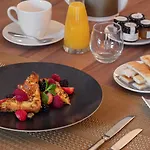 A helyszínen kontinentális reggelit is kínálnak. A bárban könnyű italokat szolgálnak fel, és toronyra néző kilátással kényeztetik a vendégeket. A hagyományos Lancaster Paris Champs-Elysees mellett található Miss Ko Vietnamese ételeket szolgál fel, hozzávetőlegesen egy 5 perces sétára.